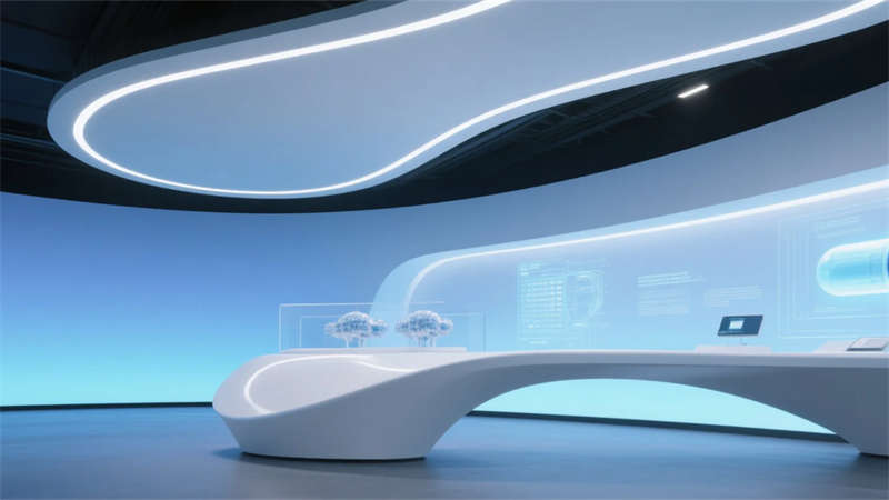 科技創(chuàng)新,簡約空間——合肥生物制藥廠展廳裝修設(shè)計效果圖
