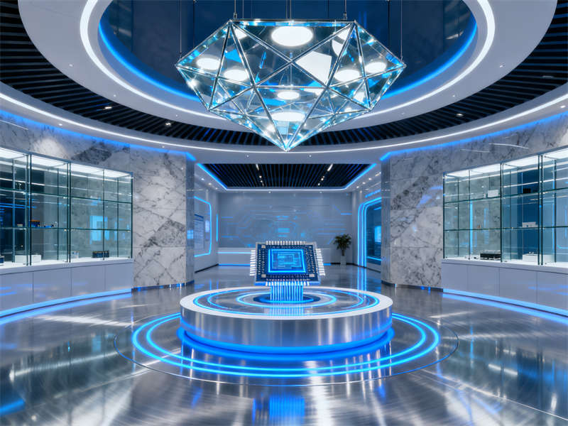 展廳入口處設置了沉浸式視覺裝置,通過光影效果模擬半導體芯片的微觀結(jié)構(gòu),讓參觀者剛進入就能直觀感受到行業(yè)特性。往里走,核心展示區(qū)采用開放式布局,搭配通透的玻璃展柜與懸浮式展臺,既方便參觀者近距離觀察展品,又能讓空間顯得開闊不壓抑。展示區(qū)旁設置了互動體驗區(qū),裝修上融入了柔和的木質(zhì)元素,平衡科技感帶來的冷峻,讓參觀者在互動過程中更顯舒適。?