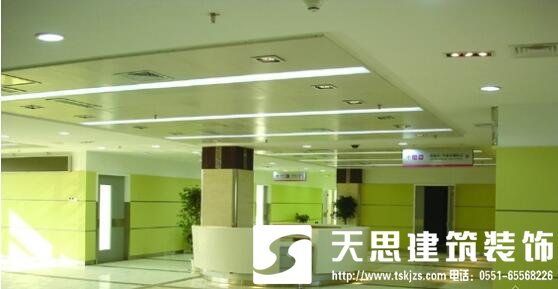 病房——橡膠地板。衛(wèi)生間、開水間、消防梯及通道——地磚。門診樓、行政辦公、科教室——防滑地磚。科研、檢驗——防靜電地板、防腐蝕地磚。天花,除門診大廳、電梯廳、過廳等公共空間外,可采用半隱式輕鋼龍骨防水石膏板吊頂。墻面——殺菌彩色乳膠漆。